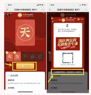 1、識別上方二維碼,即可進入集字鏈接,立即參與活動。