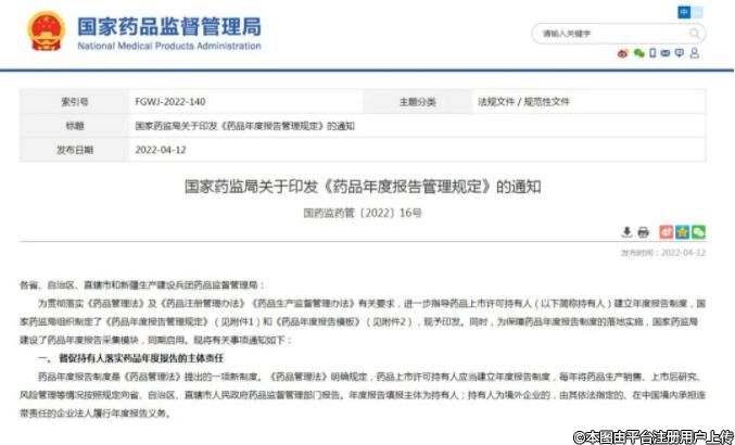 4月12日,國家藥監(jiān)局發(fā)布了關(guān)于印發(fā)《藥品年度報(bào)告管理規(guī)定》的通知。