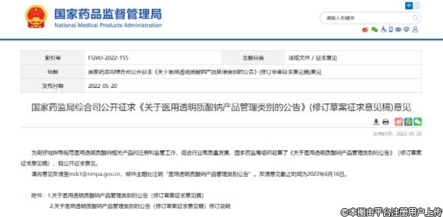 關(guān)于醫(yī)用透明質(zhì)酸鈉產(chǎn)品管理類別的公告(修訂草案征求意見稿)