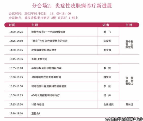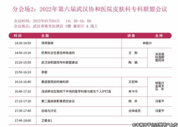2022年07月01日14:00-17:30 2022第二屆皮膚疾病診療與健康湖北省工程研究中心研討會暨2022年第六屆武漢協(xié)和醫(yī)院皮膚科??坡?lián)盟會議