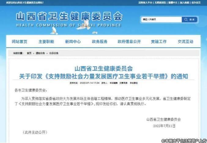 山西衛(wèi)健委:《支持鼓勵社會力量發(fā)展醫(yī)療衛(wèi)生事業(yè)若干舉措》的通知