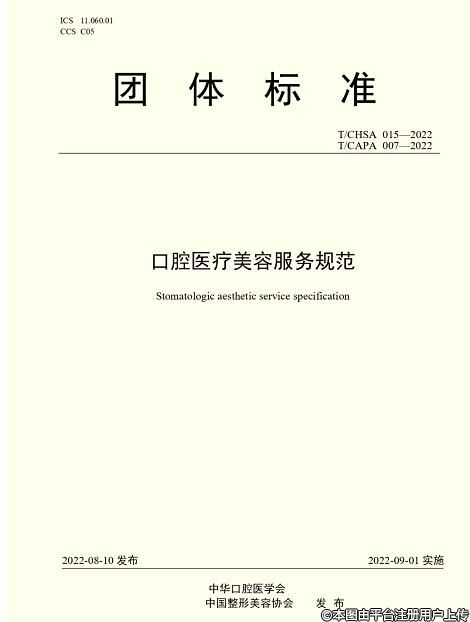 《口腔醫(yī)療美容服務(wù)規(guī)范》團(tuán)體標(biāo)準(zhǔn)自2022年9月1日起正式實施