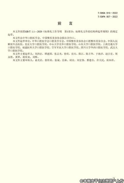 8月10日,中國整形美容協(xié)會和中華口腔醫(yī)學(xué)會聯(lián)合發(fā)布團(tuán)體標(biāo)準(zhǔn)《口腔醫(yī)療美容服務(wù)規(guī)范》(標(biāo)準(zhǔn)編號: T/CHSA 015—2022、T/CAPA 007-2022)。此標(biāo)準(zhǔn)系根據(jù)《中國整形美容協(xié)會標(biāo)準(zhǔn)化工作管理辦法》的相關(guān)規(guī)定編寫,將從2022年9月1日起正式實施?!犊谇会t(yī)療美容服務(wù)規(guī)范》團(tuán)體標(biāo)準(zhǔn)內(nèi)容如下: