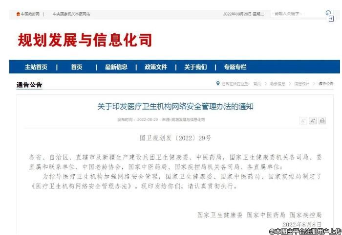 三部門印發(fā)《關(guān)于印發(fā)醫(yī)療衛(wèi)生機(jī)構(gòu)網(wǎng)絡(luò)安全管理辦法的通知》