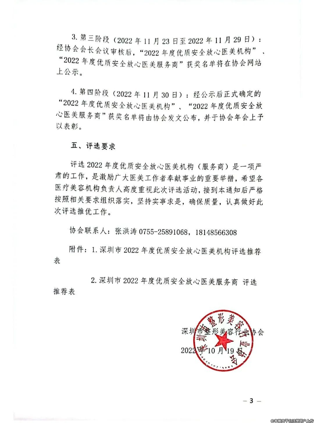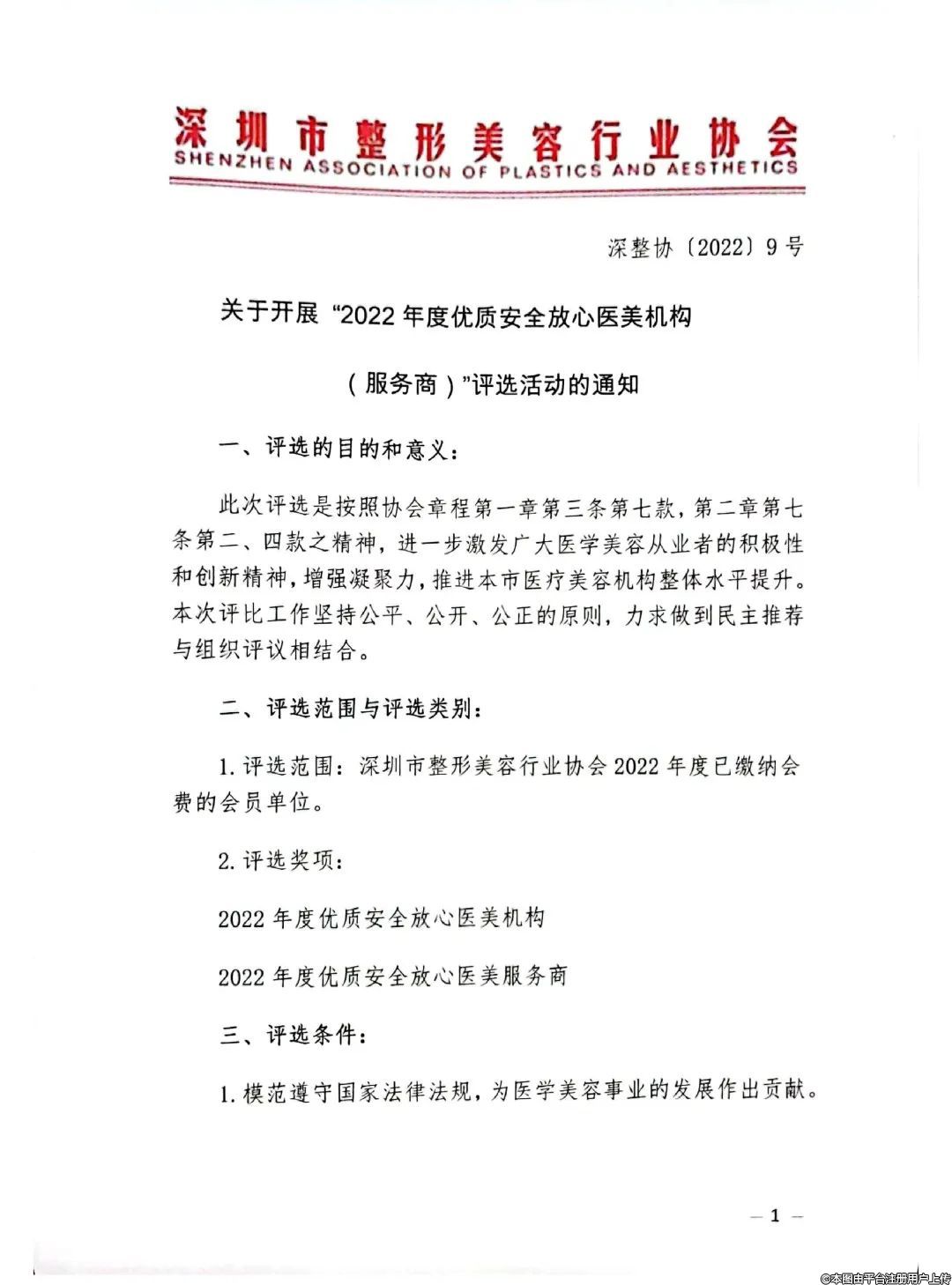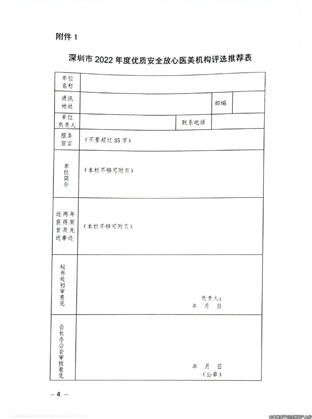 附件:1.深圳市2022年度優(yōu)質(zhì)安全放心醫(yī)美機(jī)構(gòu)評(píng)選推薦表