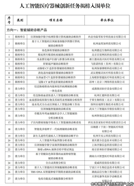 工信部&藥監(jiān)局聯(lián)合發(fā)布《人工智能醫(yī)療器械創(chuàng)新任務(wù)揭榜入圍單位》