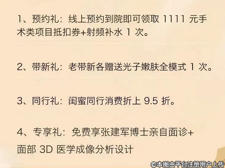 廣州博仕知美的雙十一特惠活動,線上預約即可領取超大優(yōu)惠,更多好禮還等你來搶,變美計劃不容錯過。