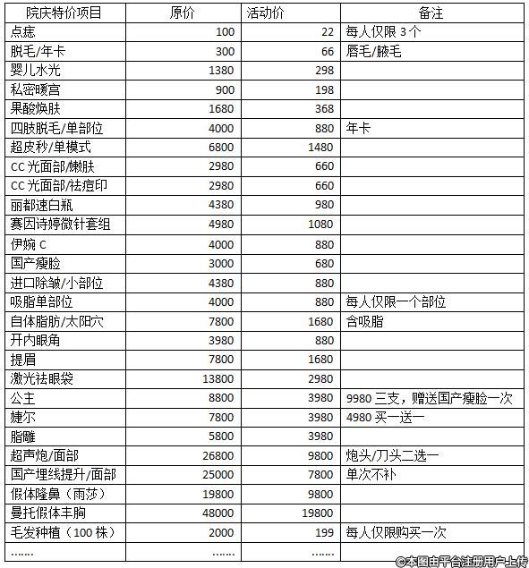 項(xiàng)目:超皮秒、超聲炮、速白瓶、CC光嫩膚、進(jìn)口除皺、深藍(lán)射頻、現(xiàn)金券888