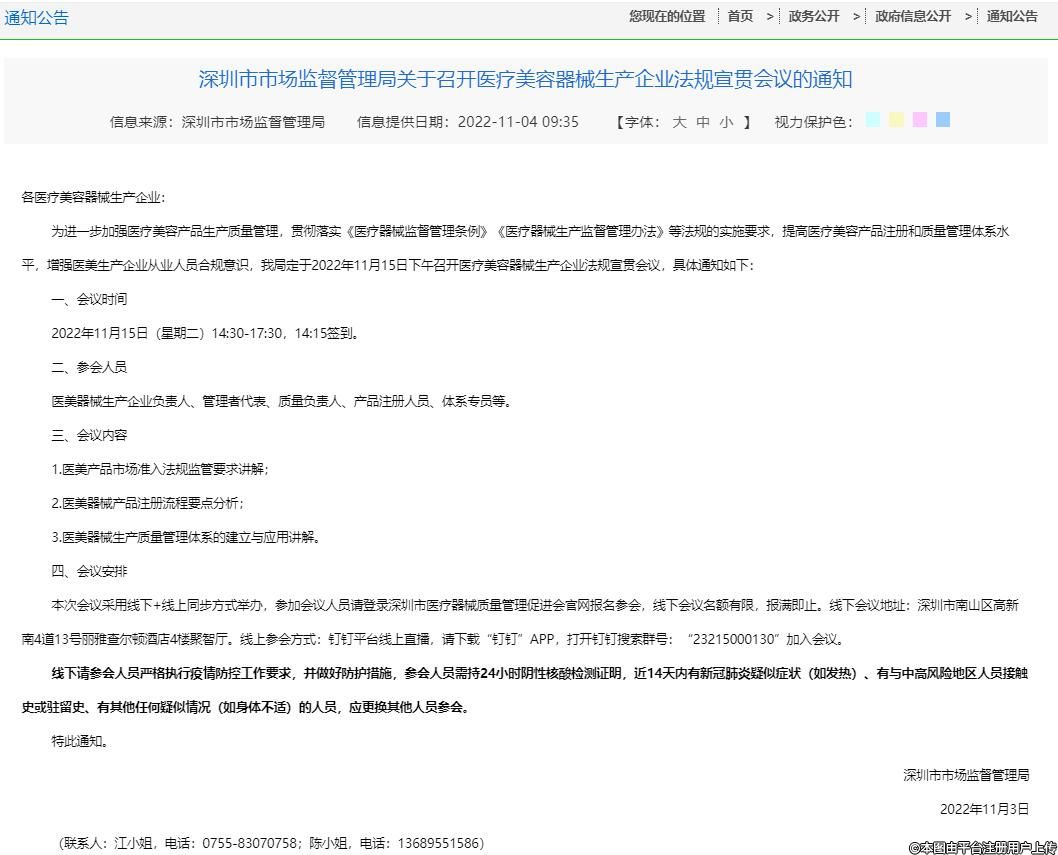 深圳市市場(chǎng)監(jiān)督管理局關(guān)于召開醫(yī)療美容器械生產(chǎn)企業(yè)法規(guī)宣貫會(huì)議的通知