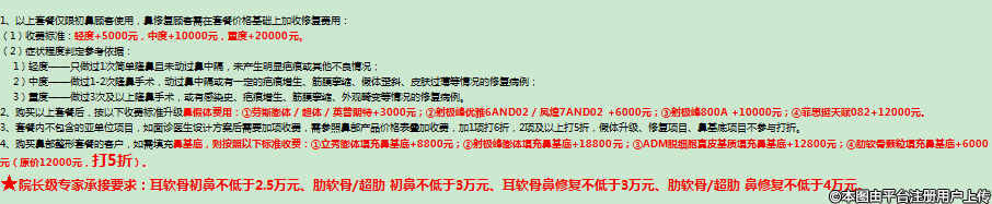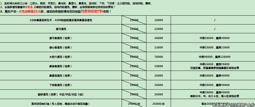 1、開年膨脹禮:預(yù)付100元可得價值10000元整形代金券,滿10000元減1000元、滿20000元減2000元、滿30000元減3000元、滿40000元減4000元??膳c儲值、老帶新等其他優(yōu)惠同享!