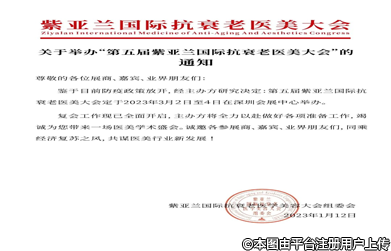 鑒于目前防疫政策放開,經(jīng)主辦方研究決定:第五屆紫亞蘭國際抗衰老醫(yī)美大會定于2023年3月2日-4日在深圳會展中心舉辦。
