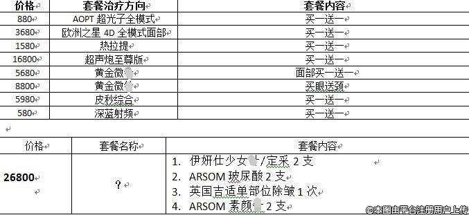 皮膚科套餐: