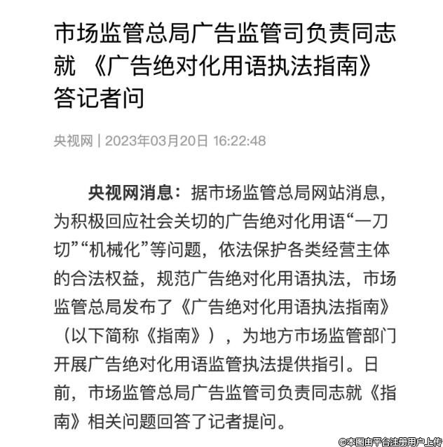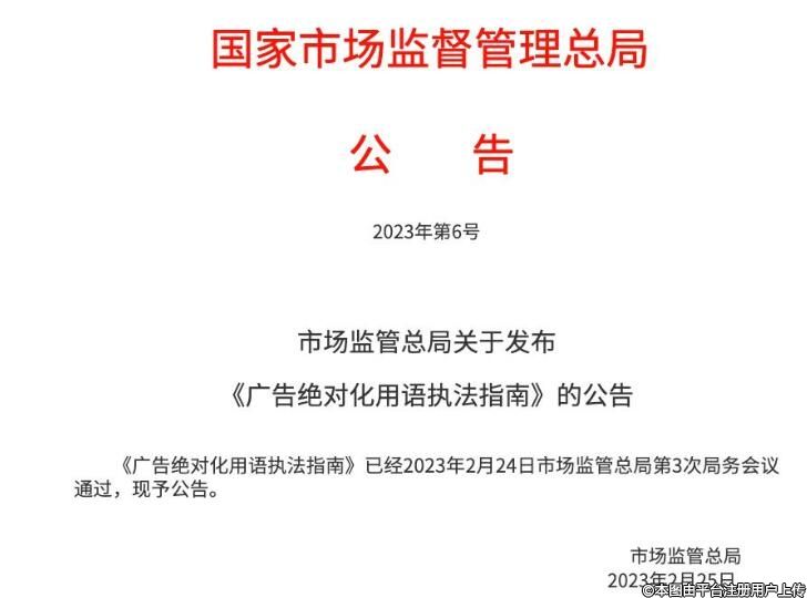 國家市場監(jiān)管總局關(guān)于發(fā)布《廣告絕對化用語執(zhí)法指南》的公告