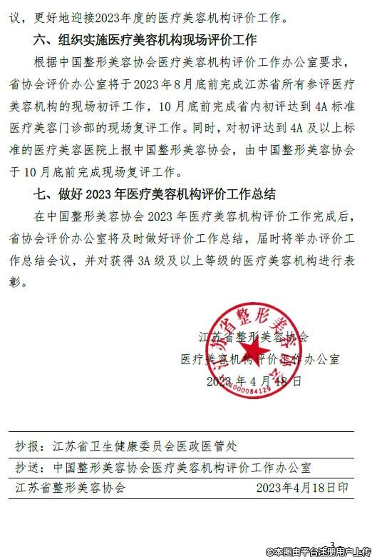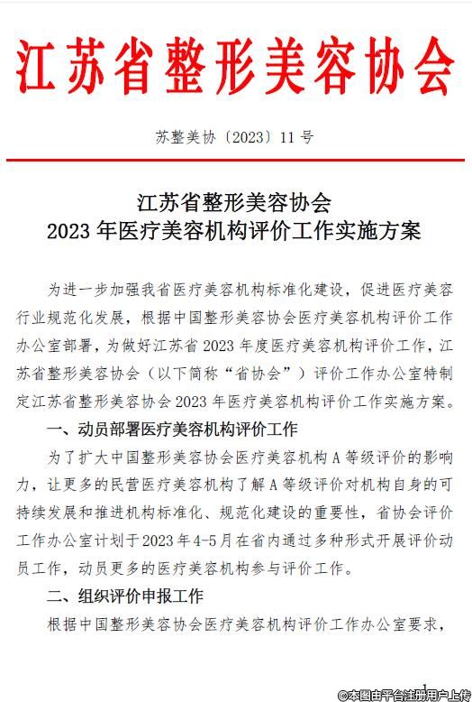 江蘇省整形美容協(xié)會(huì)2023年醫(yī)療美容機(jī)構(gòu)評價(jià)工作實(shí)施方案