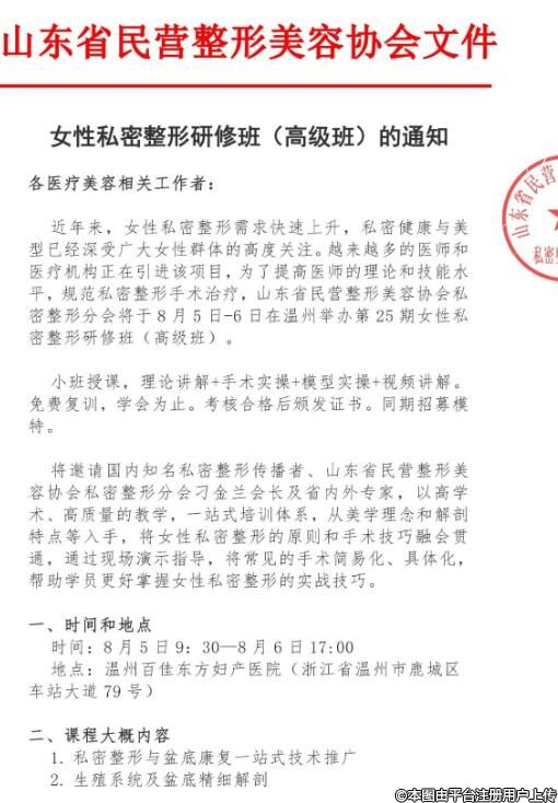 第25期女性私密整形研修班(高級班)的通知