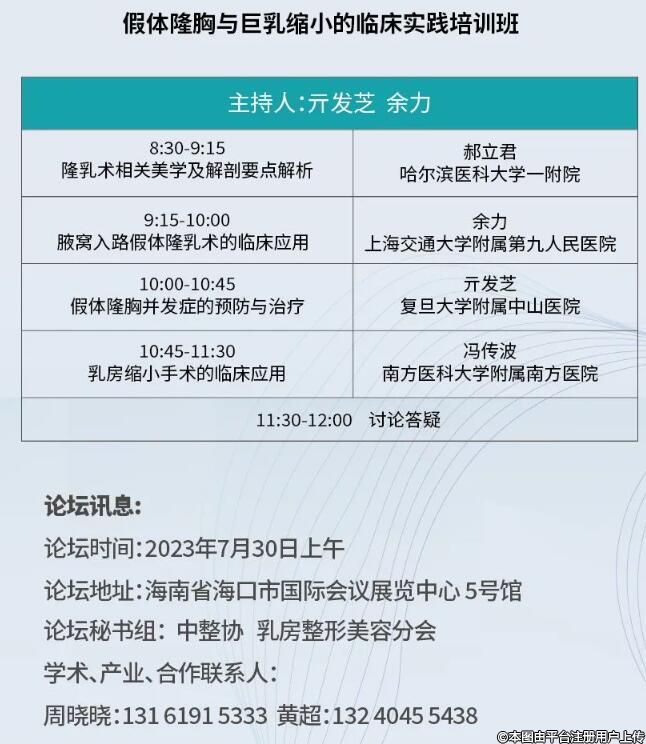 乳房假體隆胸與巨乳縮小培訓(xùn)班由中整協(xié)乳房整形美容分會承辦,邀請國內(nèi)頂級臨床一線專家,從臨床實際出發(fā),注重細(xì)節(jié),結(jié)合臨床實際問題,以期提高乳房整形從業(yè)人員的臨床診治水平。