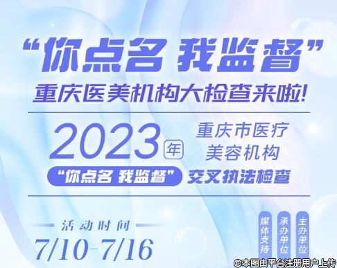 人民網(wǎng)重慶7月10日電(陳琦)7月10日,來自重慶市衛(wèi)生健康委的消息,10日起,2023年重慶市醫(yī)療美容機(jī)構(gòu)“你點名我監(jiān)督”交叉執(zhí)法檢查活動正式啟動,市民均可通過重慶市衛(wèi)生健康綜合行政執(zhí)法總隊官方微信公眾號“重慶衛(wèi)生健康衛(wèi)士”相關(guān)欄目進(jìn)行點名要求。