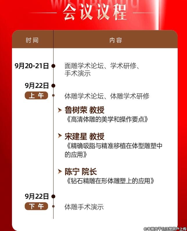 9月20日-21日,會議將舉辦面雕學術論壇。期間,與會專家將就面雕塑美進行課題分享與手術演示。