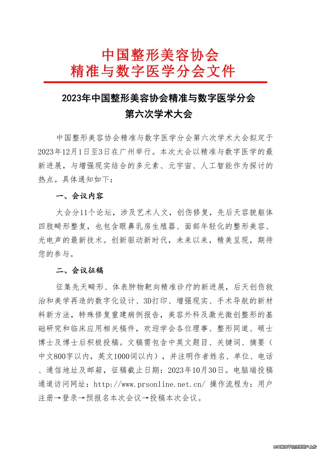 2023年中國整形美容協(xié)會精準與數(shù)字醫(yī)學分會第六次學術大會
