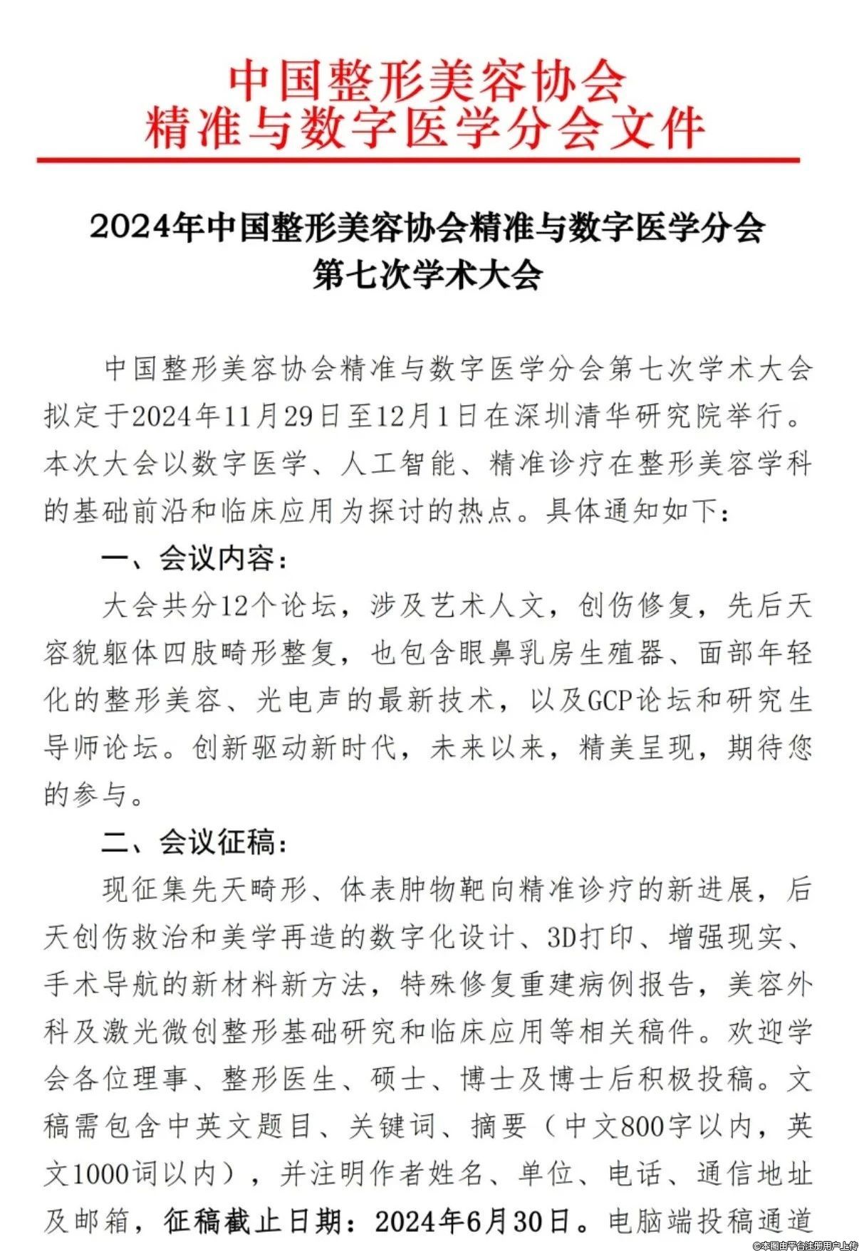 第一輪通知 2024年中國整形美容協(xié)會精準與數(shù)字醫(yī)學分會第七次學術大會
