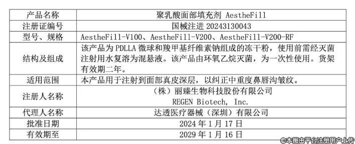 AestheFill產(chǎn)品為韓國(guó)知名醫(yī)美企業(yè)REGENBiotech,Inc.研發(fā)的一款“醫(yī)美再生注射劑”,由PDLLA微球和羧甲基纖維素鈉組成。該產(chǎn)品于2014年首次在韓國(guó)獲批上市,截至目前已在全球60余個(gè)國(guó)家和地區(qū)上市銷售。