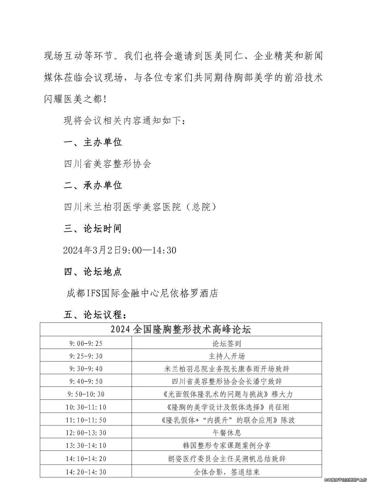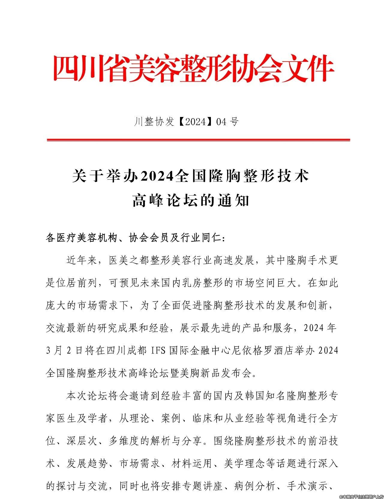 會(huì)議通知 2024全國(guó)隆胸整形技術(shù)高峰論壇暨美胸新品發(fā)布會(huì)
