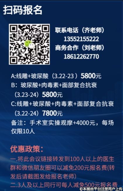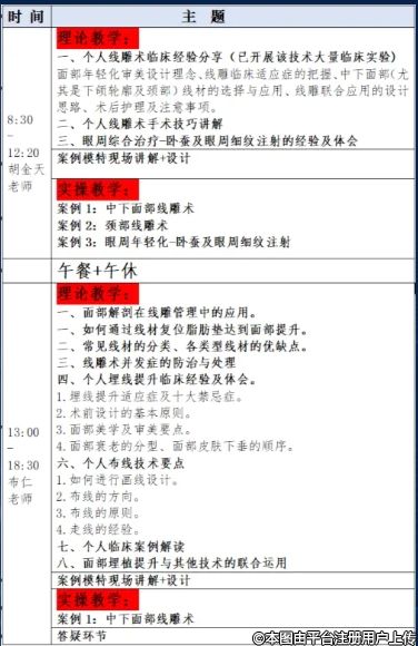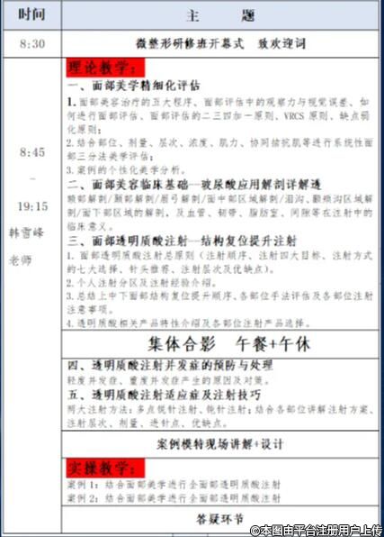 內(nèi)容涵蓋:面頸部線雕術(shù)、全顏面玻尿酸個性化美學(xué)調(diào)整、肉毒毒素聯(lián)合運用、再生類注射產(chǎn)品的應(yīng)用及體會