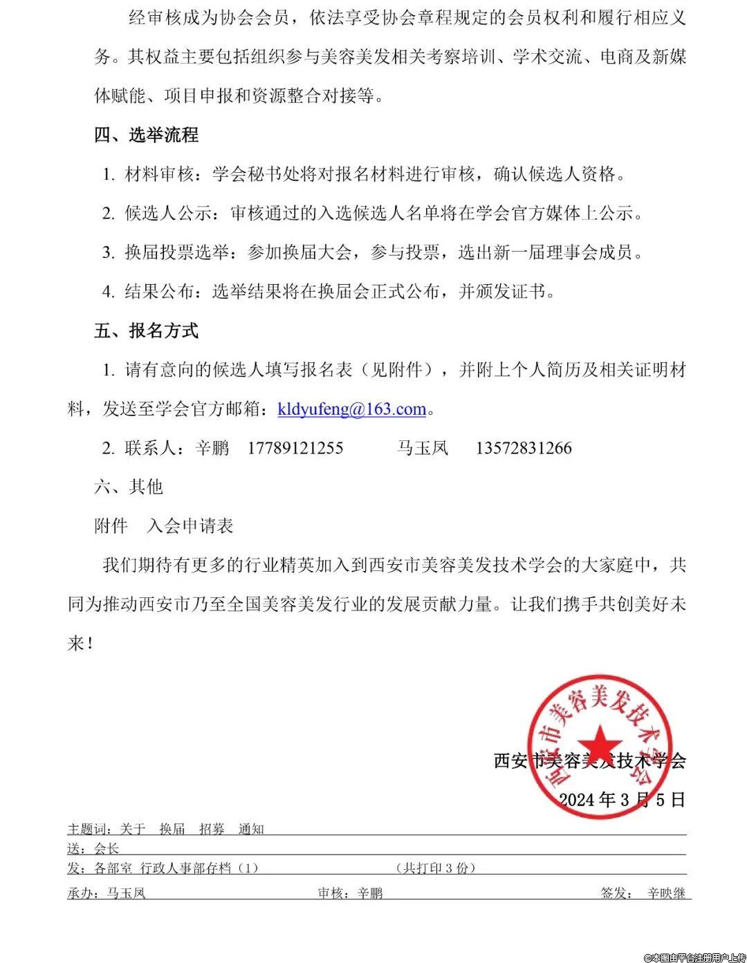 隨著第二屆理事會任期的圓滿結(jié)束,西安市美容美發(fā)技術(shù)學(xué)會即將迎來新一輪的換屆選舉。為了確保學(xué)會的持續(xù)發(fā)展和行業(yè)內(nèi)的交流合作,我們誠摯地邀請行業(yè)內(nèi)熱心人士參與到新一屆理事會的組建中來。招募事宜通知如下: