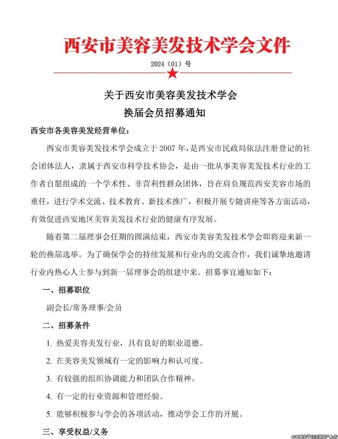 關(guān)于西安市美容美發(fā)技術(shù)學(xué)會換屆會員招募通知