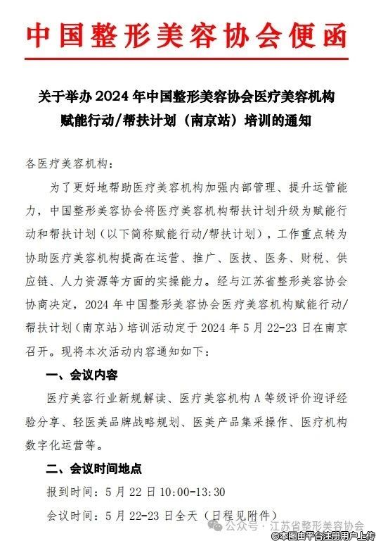 5.22-23南京,醫(yī)療美容機構(gòu)賦能行動/幫扶計劃(南京站)培訓(xùn)活動