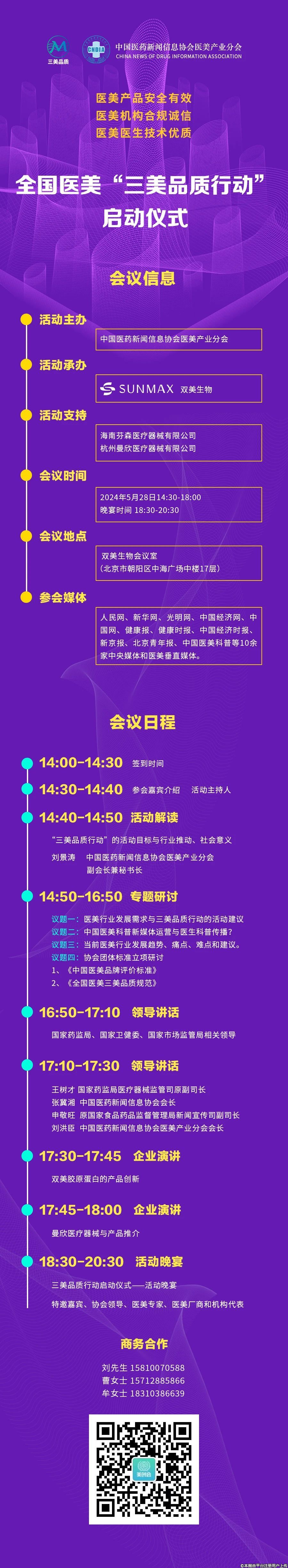 2024年5月28日14:30-18:00,將要開啟全國(guó)醫(yī)美“三美品質(zhì)行動(dòng)”啟動(dòng)儀式。