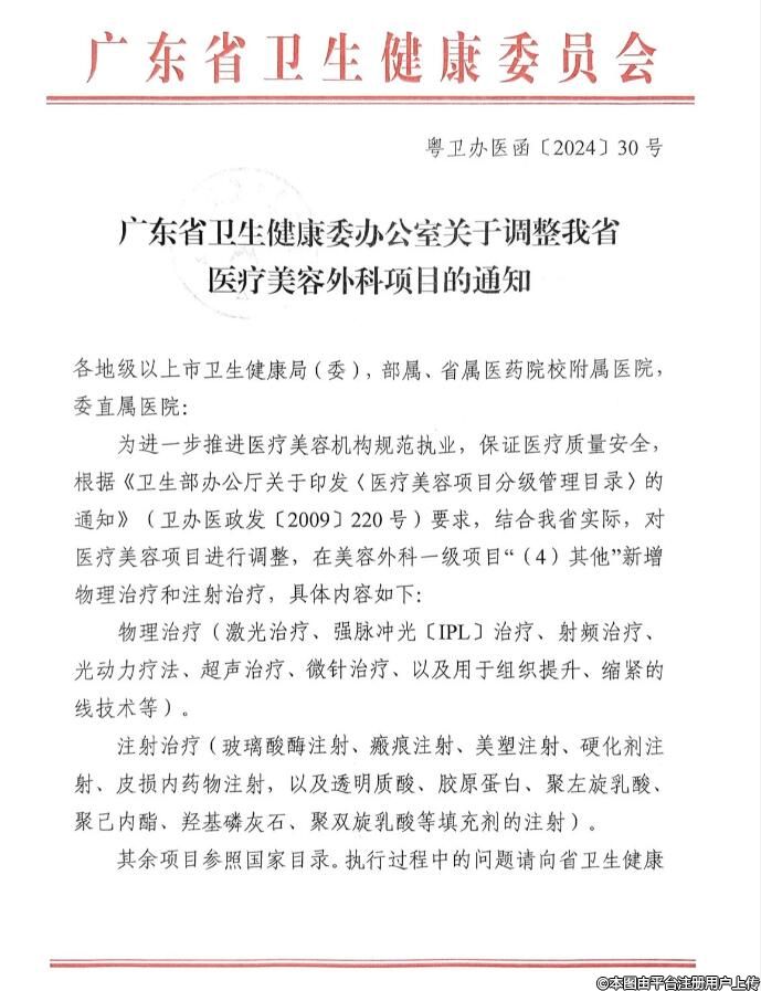 廣東省衛(wèi)生健康委辦公室關(guān)于調(diào)整我省醫(yī)療美容外科項(xiàng)目的通知