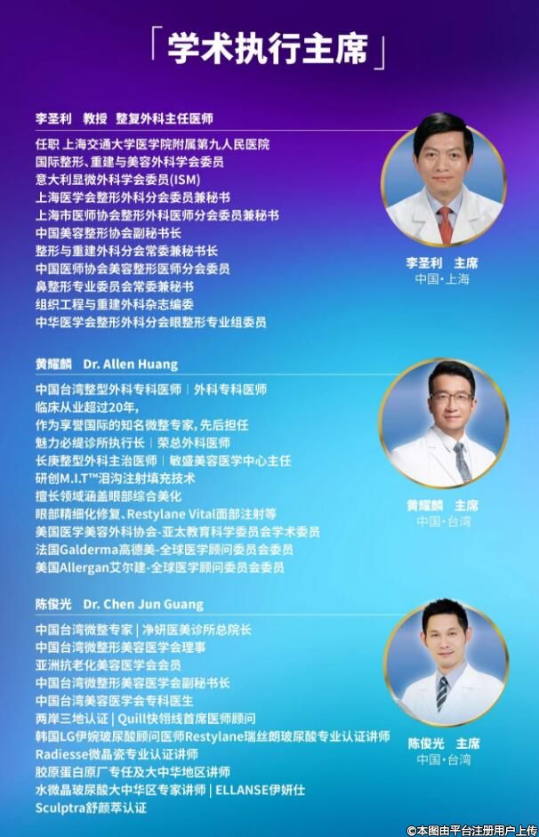 此次論壇將邀請(qǐng)到全球整形領(lǐng)域的領(lǐng)軍人物,包括享譽(yù)國(guó)際的李圣利教授、在業(yè)界備受推崇的黃耀麟博士(Dr. Allen Huang)、以及在國(guó)際醫(yī)美界頗具盛名的陳俊光博士(Dr. Chen Jun Guang)等。他們將攜手LiteMed國(guó)際醫(yī)師機(jī)構(gòu),共同打造這場(chǎng)學(xué)術(shù)交流的巔峰之作。