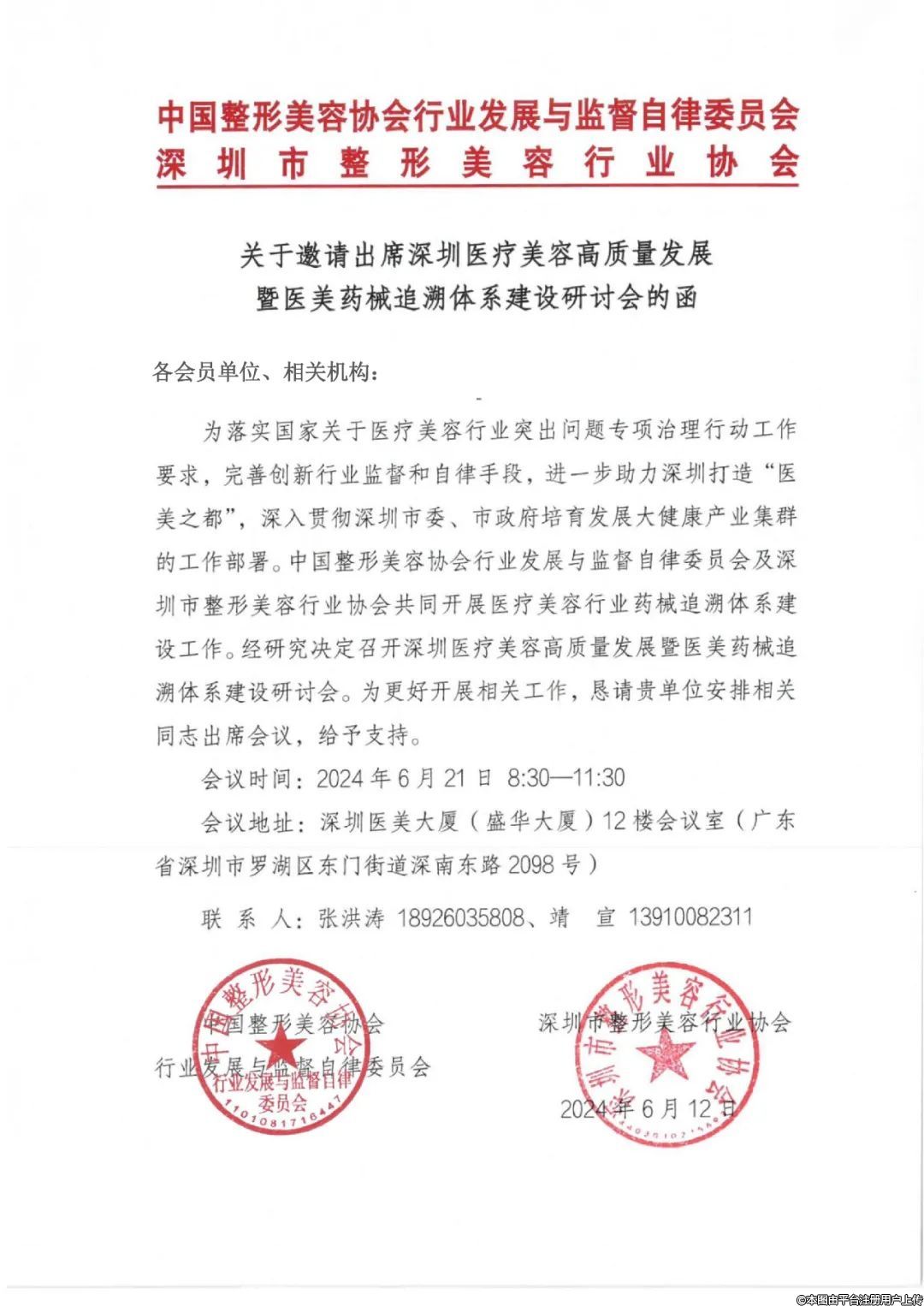 關(guān)于邀請(qǐng)出席深圳醫(yī)療美容高質(zhì)量發(fā)展暨醫(yī)美藥械追溯體系建設(shè)研討會(huì)的函
