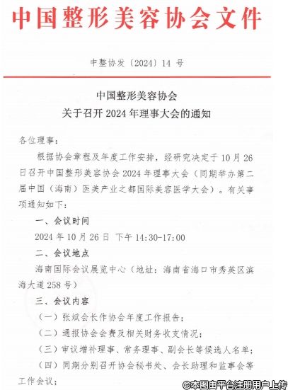 會議通知:中國整形美容協(xié)會2024年理事大會