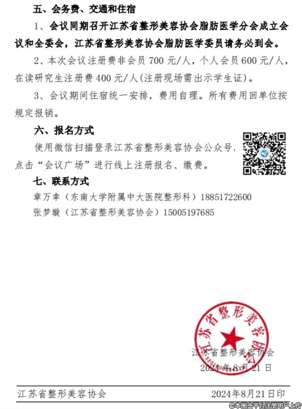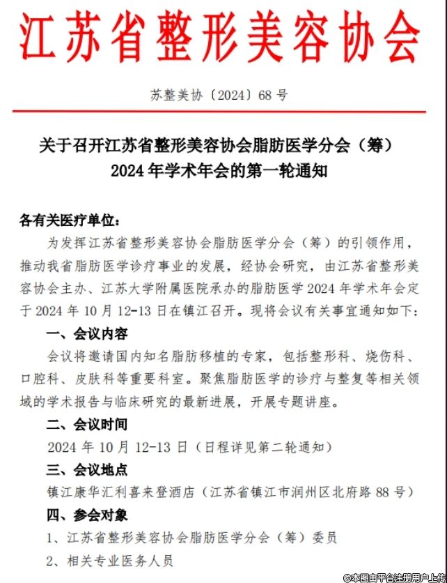 關(guān)于召開(kāi)江蘇省整形美容協(xié)會(huì)脂肪醫(yī)學(xué)分會(huì)()2024 年學(xué)術(shù)年會(huì)的第一輪通知