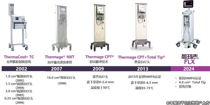 歷經(jīng)5次技術(shù)升級(jí),獲得NMPA認(rèn)證,可以說(shuō)技術(shù)非常成熟了。因?yàn)樯虡?biāo)注冊(cè)的問(wèn)題,今年4月索塔正式宣布Thermage FLX中文名為“超瑪吉”煥新上市。