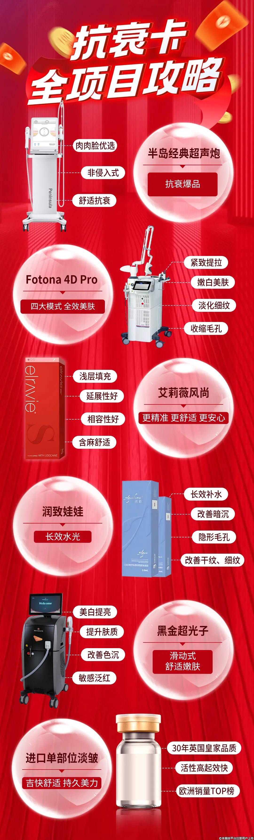 半島超聲炮、Fotona 4D Pro王牌抗衰爆品搭配黑金超光子、娃娃針,一站式KO松垮肥垂皺,讓年輕復位。臻選品質(zhì)塑形材料自由選,微整導師專家1v1美學設計,定制高階氣質(zhì)美。