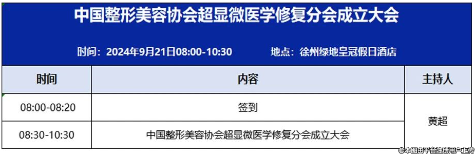 9月20-21日,中國(guó)整形美容協(xié)會(huì)超顯微醫(yī)學(xué)修復(fù)分會(huì)成立大會(huì)暨第一屆超級(jí)顯微醫(yī)學(xué)修復(fù)學(xué)術(shù)交流會(huì)即將召開(kāi)
