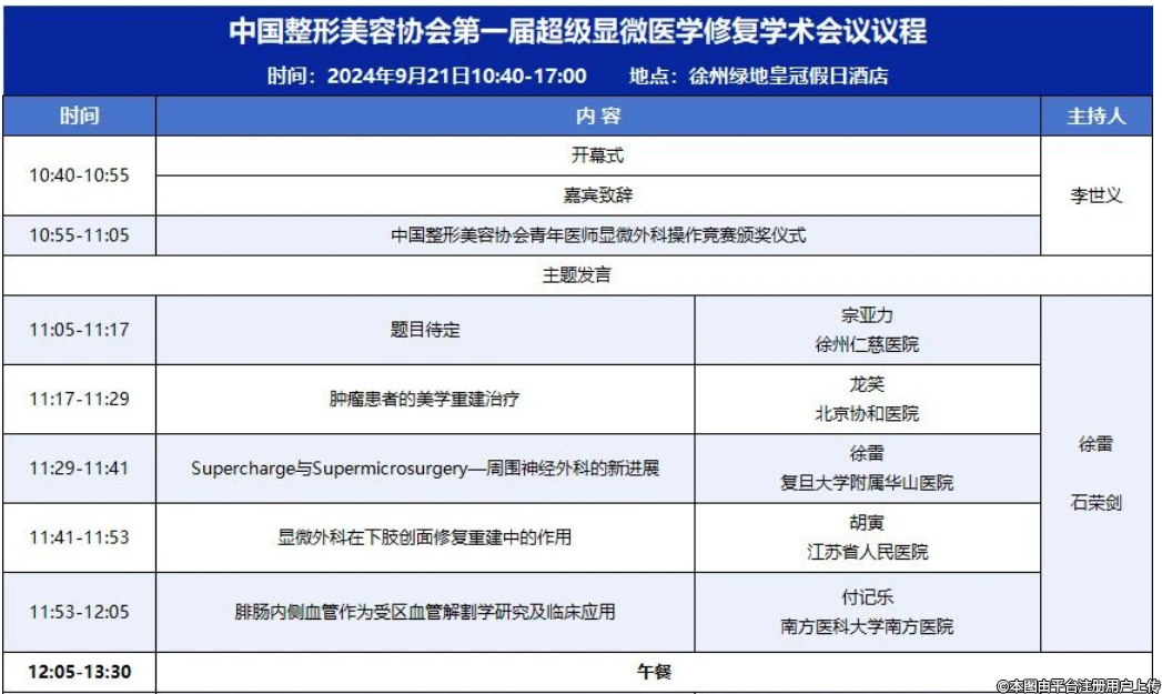 2024年9月20-21日,由中國(guó)整形美容協(xié)會(huì)主辦、徐州仁慈醫(yī)院承辦的中國(guó)整形美容協(xié)會(huì)超顯微醫(yī)學(xué)修復(fù)分會(huì)成立大會(huì)暨第一屆超級(jí)顯微醫(yī)學(xué)修復(fù)學(xué)術(shù)交流會(huì)即將在徐州隆重召開(kāi)。
