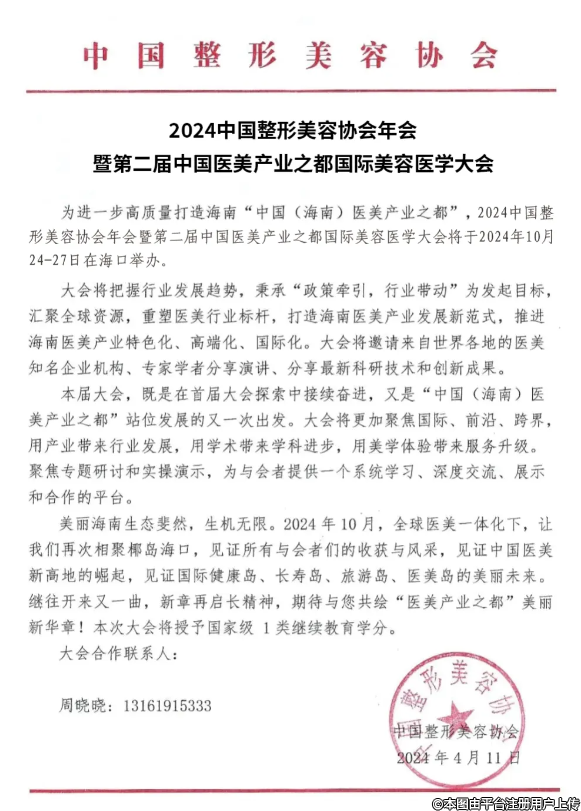 為進(jìn)一步高質(zhì)量打造海南“中國(guó)(海南)醫(yī)美產(chǎn)業(yè)之都”,2024中國(guó)整形美容協(xié)會(huì)年會(huì)暨第二屆中國(guó)醫(yī)美產(chǎn)業(yè)之都國(guó)際美容醫(yī)學(xué)大會(huì)將于2024年10月24-27日在??谂e辦。