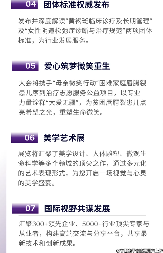 大會(huì)將把握行業(yè)發(fā)展趨勢(shì),秉承“政策牽引,行業(yè)帶動(dòng)”為發(fā)起目標(biāo)匯聚全球資源,重塑醫(yī)美行業(yè)標(biāo)桿,打造海南醫(yī)美產(chǎn)業(yè)發(fā)展新范式,推進(jìn)海南醫(yī)美產(chǎn)業(yè)特色化、高端化、國(guó)際化。大會(huì)將邀請(qǐng)來(lái)自世界各地的醫(yī)美知名企業(yè)機(jī)構(gòu)、專家學(xué)者分享演講、分享最新科研技術(shù)和創(chuàng)新成果。