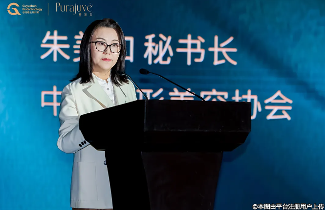 會議分享伊始,中國整形美容協(xié)會朱美如秘書長,率先上臺進行分享。她選擇的話題聚焦于“醫(yī)療美容行業(yè)材料合規(guī)與材料發(fā)展”。首先,朱美如女士對塑妍真品牌的發(fā)布儀式表達了美好的祝愿。