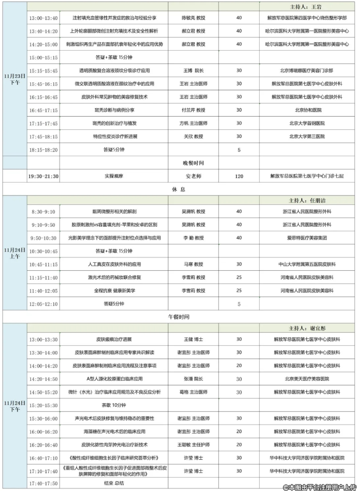 本次學習班主要學習內(nèi)容:面部年輕化精準治療理念和皮膚分層治療手段;微創(chuàng)注射美容相關(guān)解剖學基礎(chǔ)知識;肉毒毒素臨床應(yīng)用新進展;皮瓣美容修復(fù)技巧;兒童皮膚外科及其適應(yīng)癥;透明質(zhì)酸注射填充技巧及并發(fā)癥處理;線技術(shù)與面部年輕化;再生醫(yī)美新材料皮膚抗衰臨床應(yīng)用及研究新進展;微注射技術(shù)與皮膚分層管理;微創(chuàng)美容手段與光電能量源類技術(shù)的聯(lián)合應(yīng)用:新型光聲電技術(shù)的臨床應(yīng)用及專家共識:美塑療法(水光注射)臨床應(yīng)用及其風險防范;激光術(shù)與微創(chuàng)美容術(shù)中常見問題和不良反應(yīng)處理;美容外科及光電治療特殊案例分享;養(yǎng)發(fā)育發(fā)新技術(shù)與頭皮毛發(fā)健康管理;斑禿治療新進展;皮膚表面麻醉制劑臨床應(yīng)用專家共識解讀等。