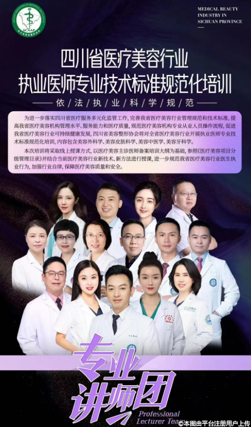 為進(jìn)一步落實(shí)四川省醫(yī)療服務(wù)多元化監(jiān)管工作,完善我省醫(yī)療美容行業(yè)管理規(guī)范和技術(shù)標(biāo)準(zhǔn),提高我省醫(yī)療美容機(jī)構(gòu)管理水平、服務(wù)能力和醫(yī)療質(zhì)量,規(guī)范醫(yī)療美容機(jī)構(gòu)專業(yè)從業(yè)人員操作流程,促進(jìn)我省醫(yī)療美容行業(yè)可持續(xù)健康發(fā)展,四川省美容整形協(xié)會(huì)將對(duì)全省醫(yī)療美容行業(yè)開展執(zhí)業(yè)醫(yī)師專業(yè)技術(shù)標(biāo)準(zhǔn)規(guī)范化培訓(xùn),內(nèi)容包含美容外科學(xué)、美容皮膚科學(xué)、美容中醫(yī)學(xué)、美容牙科學(xué)。
