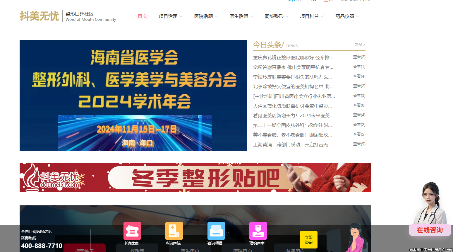 俗話說,多看,多問,總不會不錯(cuò)的。抖美無憂平臺實(shí)時(shí)收集、匯總了全網(wǎng)公開的給類醫(yī)美相關(guān)信息,為求美者提示就醫(yī)風(fēng)險(xiǎn)、醫(yī)美行業(yè)發(fā)展趨勢、還提供在線免費(fèi)咨詢的服務(wù),供醫(yī)美求美者了解到新的醫(yī)美市場發(fā)展趨勢。