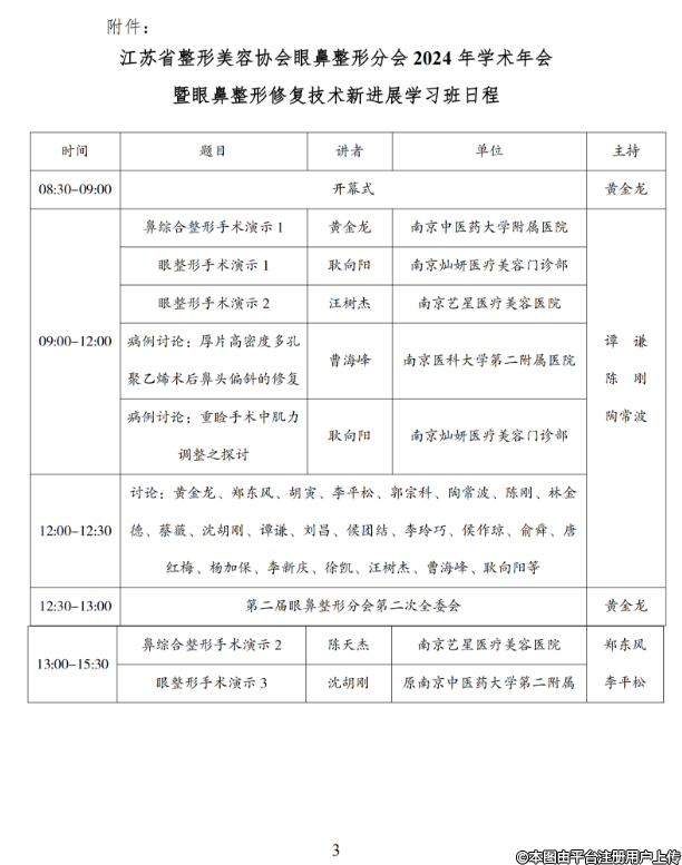 江蘇省整形美容協(xié)會眼鼻整形分會2024年學(xué)術(shù)年會暨眼鼻整形修復(fù)技術(shù)新進(jìn)展學(xué)習(xí)班日程