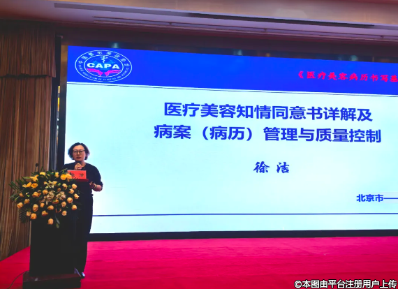 《醫(yī)療美容病歷書寫基本規(guī)范》編者徐潔主任講授了醫(yī)療美容護(hù)理記錄、美容知情同意書寫規(guī)范及病案管理。