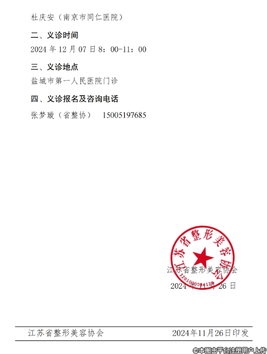 為貫徹落實(shí)黨中央健康中國(guó)戰(zhàn)略和國(guó)務(wù)院《全民科學(xué)素質(zhì)行動(dòng)計(jì)劃綱要》,發(fā)揮協(xié)會(huì)為民服務(wù)的宗旨,利用協(xié)會(huì)專家資源,為基層提供醫(yī)療技術(shù)支持,推動(dòng)當(dāng)?shù)蒯t(yī)學(xué)科學(xué)發(fā)展和人才培養(yǎng),提高當(dāng)?shù)厝嗣袢罕姷慕】狄庾R(shí)和健康水平,由江蘇省整形美容協(xié)會(huì)主辦、江蘇省整形美容協(xié)會(huì)乳房整形分會(huì)、鹽城市第一人民醫(yī)院聯(lián)合承辦的專家義診定于 2024年12月07 日在鹽城舉辦,歡迎各位同仁的關(guān)注和參加。義診安排如下: