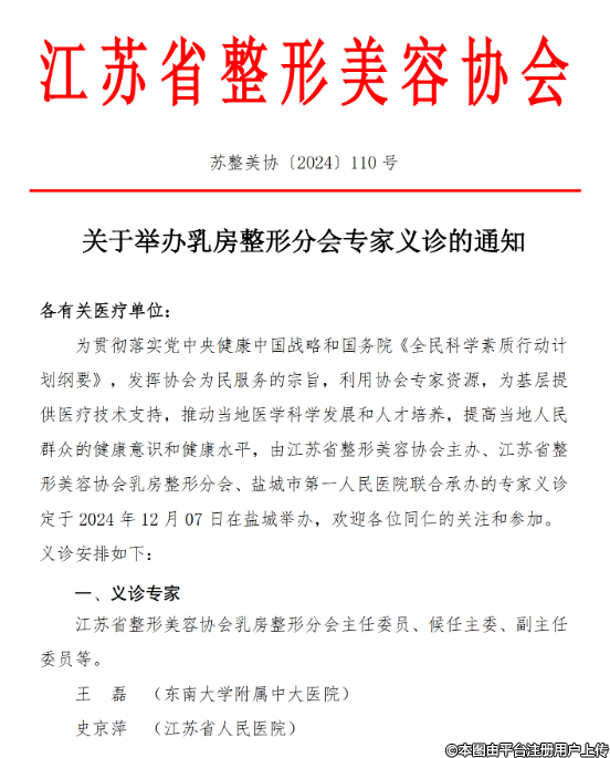 關(guān)于舉辦乳房整形分會(huì)專家義診的通知